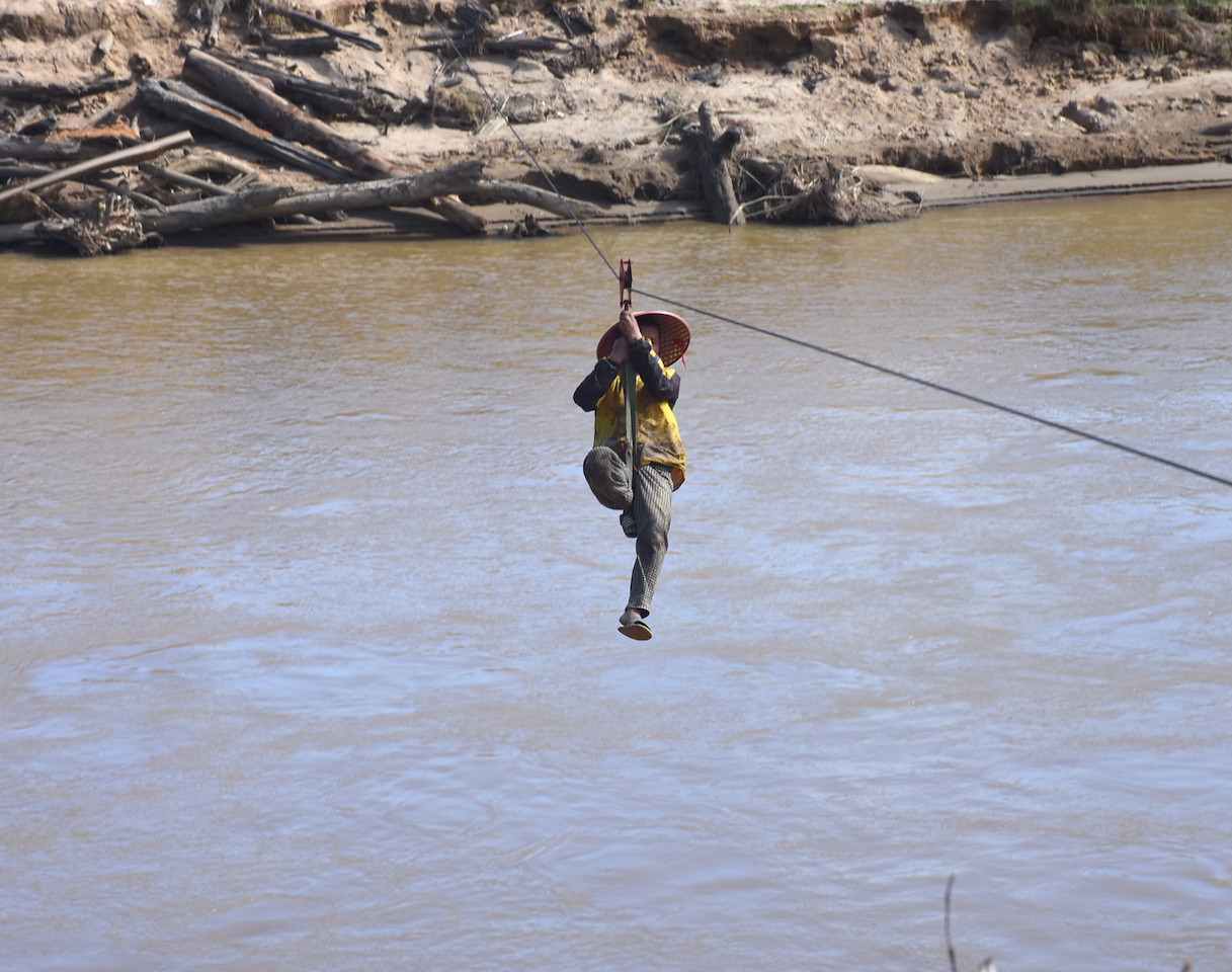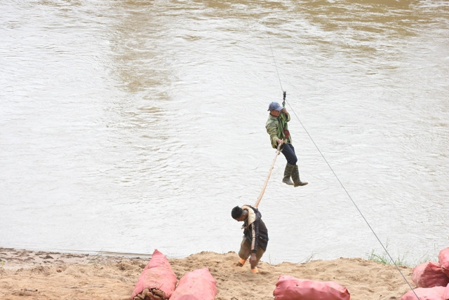 Biết việc qua sông bằng cách này không an toàn nhưng người dân vẫn làm vì đã đến vụ thu hoạch nông sản. Chính vậy mà chỉ những người đàn ông khoẻ mạnh, biết bơi mới qua sông bằng cách như làm xiếc