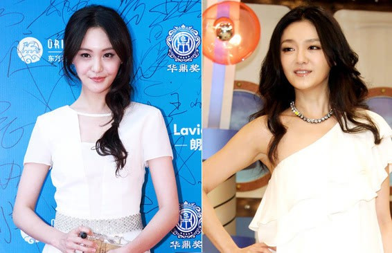 Người đẹp sinh năm 1993 Điệp Y Y (trái) được đông đảo báo chí quan tâm nhờ gương mặt y tạc Lưu Diệc Phi (phải).