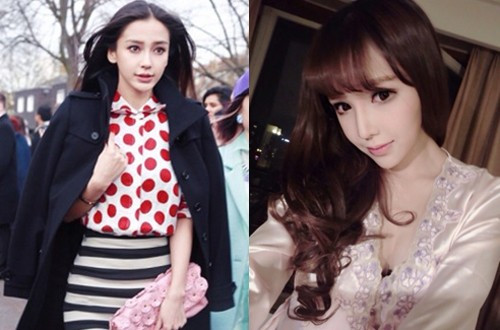 Angela Baby (trái) hoàn toàn bất ngờ khi phát hiện có một người mẫu Đại lục sở hữu gương mặt giống cô.