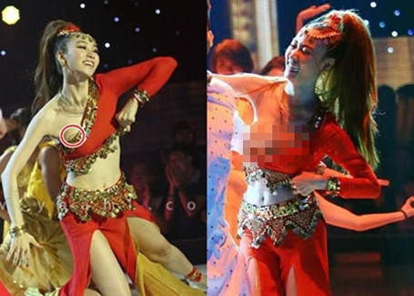 Tóc Tiên và sự cố không mong muốn. Do trình diễn quá sung, nữ ca sỹ gợi cảm Tóc Tiên cũng có lần gặp “tai nạn” lộ miếng dán ngực trên sân khấu The Remix (Hòa âm ánh sáng).
