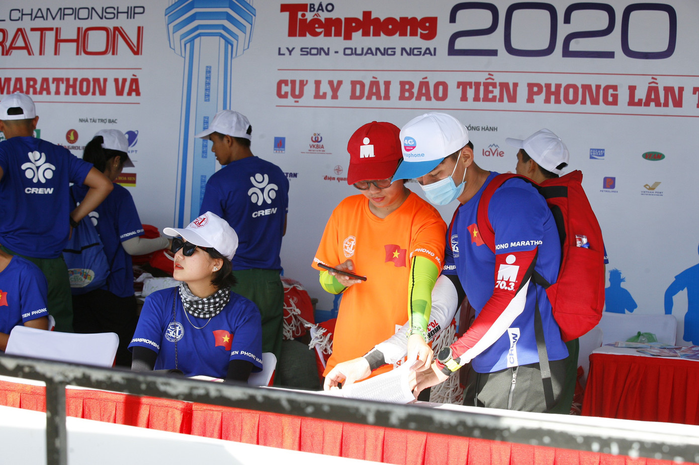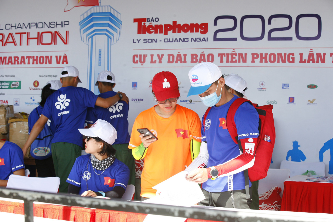 Đội ngũ tình nguyện viên của Tiền Phong Marathon bao gồm 200 cán bộ, chiến sỹ của đảo Lý Sơn. Số tình nguyện viên còn lại hầu hết là các runner, những người yêu thích chạy bộ ở khắp ba miền có tình cảm đặc biệt với giải chạy lâu đời của báo Tiền Phong.