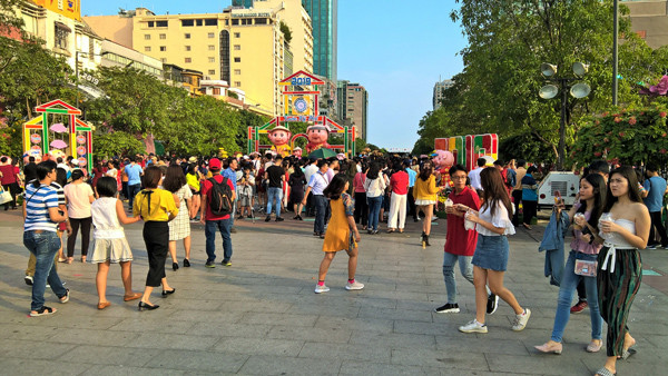 Đường hoa Nguyễn Huệ, TPHCM thu hút hàng vạn du khách mỗi ngày Tết, quang cảnh rất sạch sẽ vì được lực lượng làm vệ sinh liên tục thu dọn rác không kể ngày đêm