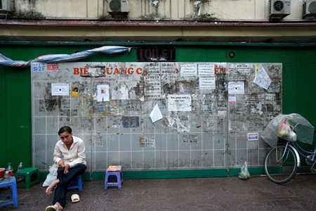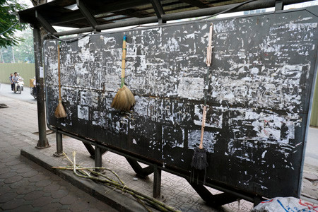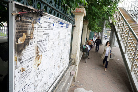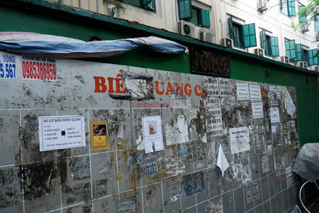 Không thấy có sự quản lý nào của chính quyền, lớp giấy cũ được xé đi dán đè lượt giấy mới với đủ loại keo dán.