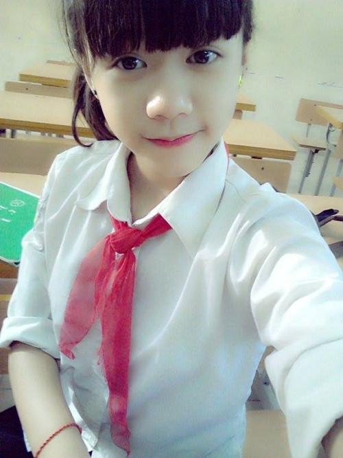 Cô bạn thường có những bức ảnh trong trang phục giản dị với áo trắng, khăn quàng đỏ trong sáng.