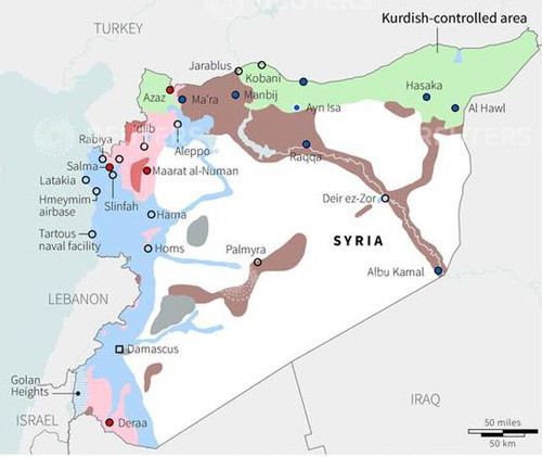 Tại tỉnh Latakia, các lực lượng đồng minh của quân đội Syria đã giành được một số làng mạc ở phía bắc thành phố, tạo tiền đề để hình thành thế bao vây, quây chặt quân nổi dậy trong khu vực này. Tuy nhiên, trong những tuần gần đây, thế tiến công của họ bị chững lại và gần như bế tắc, khiến vòng vây không thể hình thành hoàn chỉnh. Trong khi đó, tỉnh miền nam Daraa vẫn là địa bàn của phiến quân Nhà nước Hồi giáo (IS), al-Qaeda và nhiều nhóm nổi dậy khác nhau.