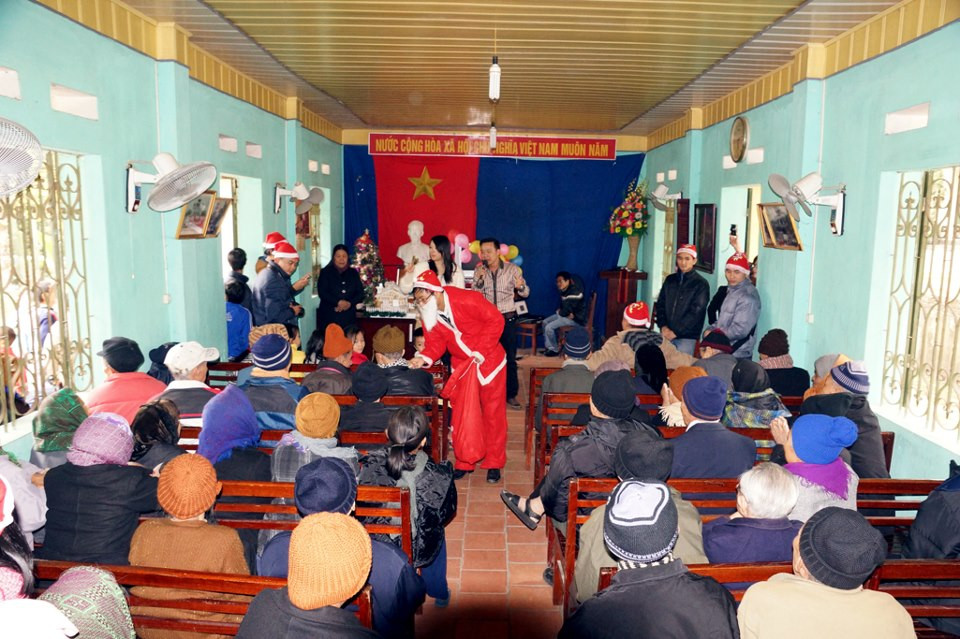 | Giáng sinh ấm áp cho những người già neo đơn, khuyết tật tại Trung tâm phong Quả Cảm (Bắc Ninh). Ảnh: CLB Những ước mơ xanh Hà Nội cung cấp. |