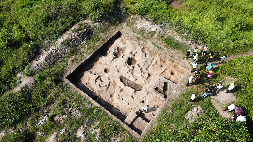 Toàn cảnh nhìn từ trên cao của một hố khai quật tại di chỉ Vườn Chuối. Ảnh: Mạnh Thắng