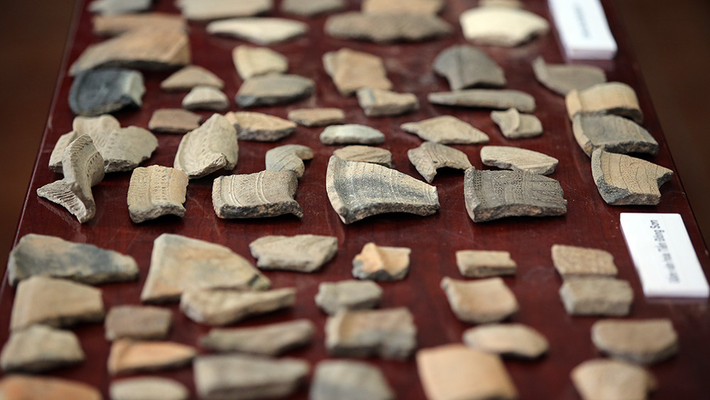 Một số mảnh di vật thu được ở Vườn Chuối. Ảnh: Mạnh Thắng
