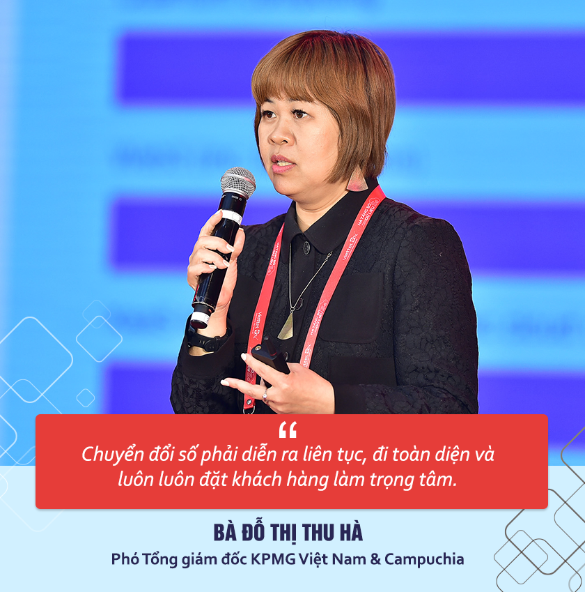 Phát biểu tham luận khắc họa bức tranh toàn cảnh về việc đầu tư công nghệ chuyển đổi số cho doanh nghiệp, bà Đỗ Thị Thu Hà, Phó Tổng giám đốc, Lãnh đạo Khối Cơ sở hạ tầng, Chính Phủ và Y tế Lãnh đạo Tư vấn Giải pháp ESG, KPMG Việt Nam & Campuchia nhấn mạnh 5 điều doanh nghiệp cần lưu ý với chuyển đổi số.