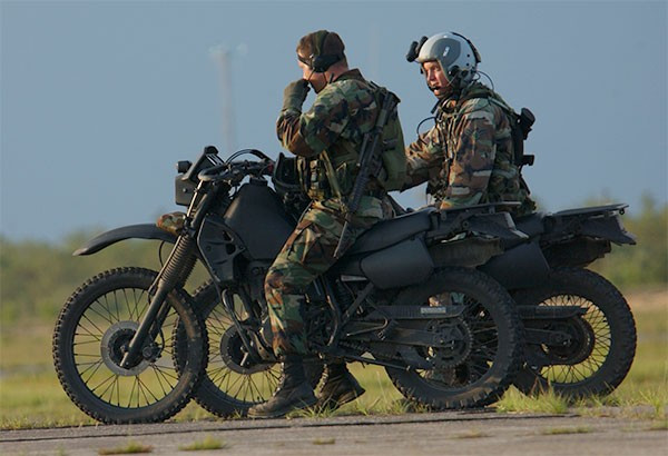Binh sĩ Mỹ cưỡi môtô Kawasaki KLR250-D8. Người ta thả chúng từ trực thăng xuống mặt đất tại những địa điểm cần sử dụng. Ranger Regiment 75, đơn vị biệt động bộ binh, cũng dùng Kawasaki KLR250-D8 trong các hoạt động trinh sát.
