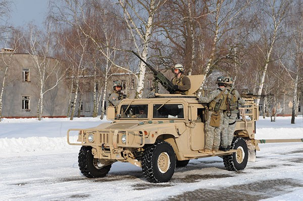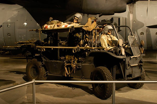 Đặc nhiệm Mỹ trên xe thiết giáp cơ động mặt đất (GMV) trong một buổi huấn luyện. Quân đội Mỹ sử dụng loại phương tiện này tại Iraq trong các cuộc đột kích vào mục tiêu ở đô thị. GMV không chỉ chuyên chở mà còn trở thành bệ súng khi cần.