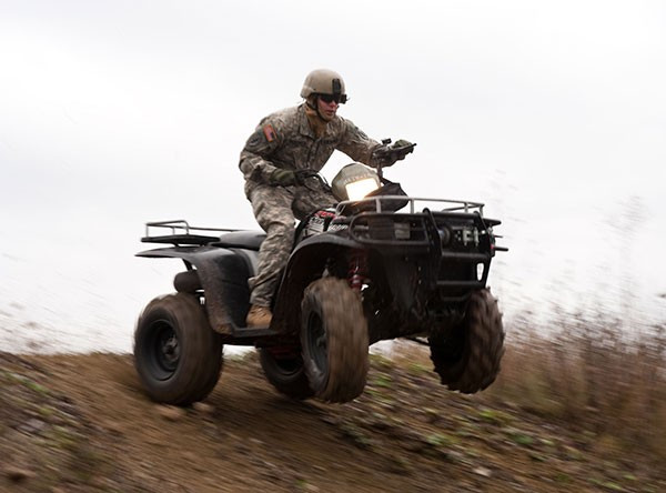 Đặc nhiệm Mỹ cưỡi xe địa hình (ATV) trong một buổi huấn luyện. Loại xe 4 bánh này rất cơ động tại sa mạc của Iraq hoặc vùng núi của Afghanistan. Cả về kích cỡ, vận tốc và tính tiện dụng đều lý tưởng cho các chiến dịch đặc biệt. Lực lượng Delta, SEAL… thường sử dụng ATV ở Afghanistan.