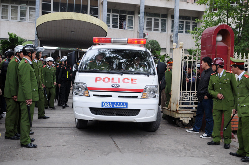 Lê Văn Luyện được bảo hệ hết sức nghiêm ngặt trên đường từ trại giam đến tòa án.