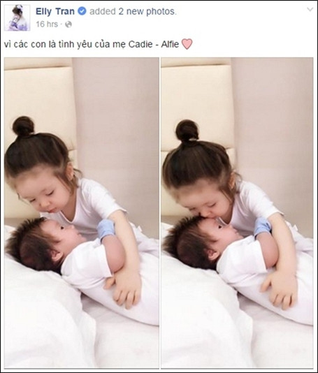 Hình ảnh con trai Alfie Túc Mạch và cô con gái Cadie Mộc Trà được Elly Trần chia sẻ trên trang cá nhân luôn được người xem đón đợi. Thậm chí giờ đây cô bé Cadie Mộc Trà còn có lượng fan không kém cạnh gì mẹ vì những biểu cảm hết sức dễ thương cùng gu thời trang mẹ con cực chuẩn.