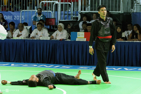 Trong trận chung kết pencak silat hạng cân từ 55kg đến 60kg hôm 14/6, võ sĩ Nguyễn Nguyên Thái Linh của Việt Nam bị xử thua sau khi đấm vào mặt đối thủ người Thái Lan khiến anh này lăn ra đất bất tỉnh. Một thành viên ban huấn luyện Việt Nam cho rằng, VĐV Thái Lan ăn vạ, giả vờ ngất xỉu.