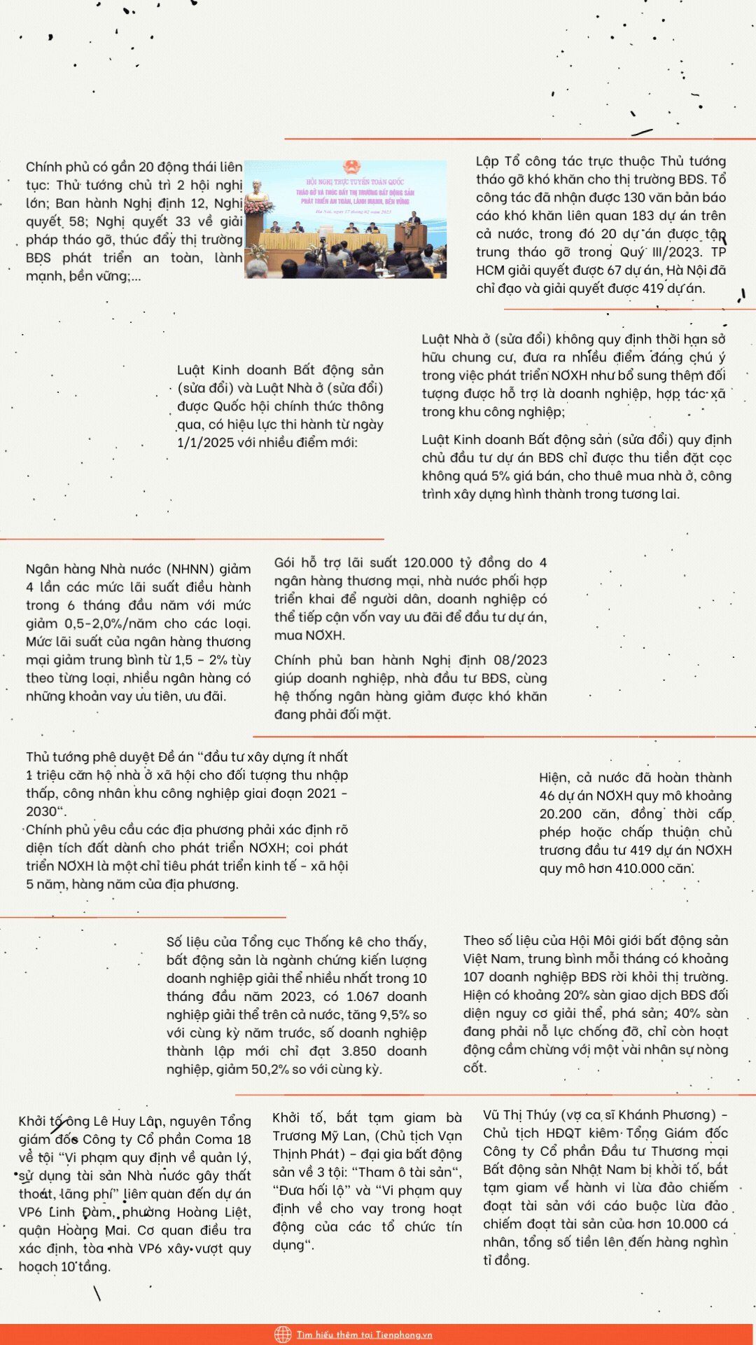 TPO - Thông qua Luật Nhà ở và Kinh doanh Bất động sản (BĐS) sửa đổi; Năm gỡ vướng pháp lý và nỗ lực khơi dòng tín dụng cho BĐS; Quan tâm phát triển nhà ở xã hội (NƠXH); nhiều đại gia địa ốc bị khởi tố … .là một số trong rất nhiều sự kiện nổi bật của thị trường trong năm 2023.