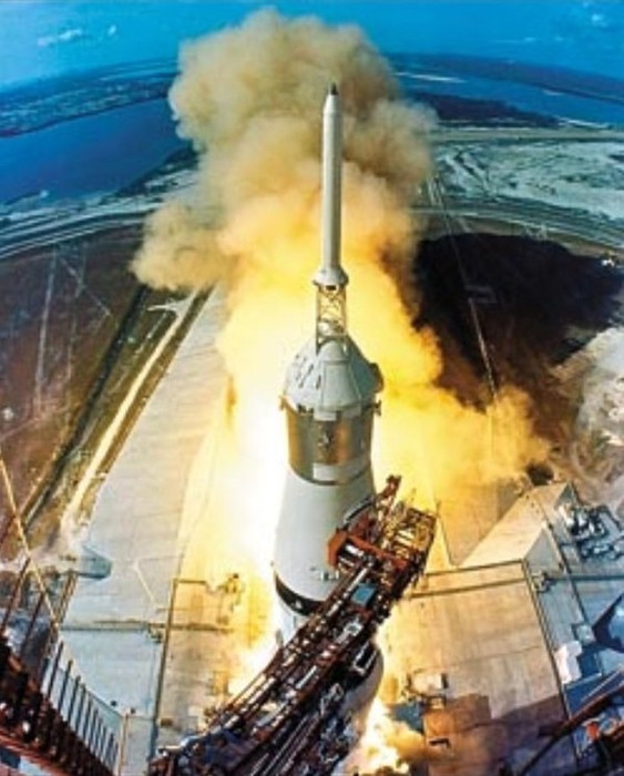 'Saturn V Launch', chụp năm 1969. Hình ảnh mô tả con tàu Apollo 11 được phóng ra ngoài vũ trụ mang theo các nhà phi hành gia nổi tiếng như Neil Amstrong. Đây là bức hình nổi tiếng nhất về con tàu này.