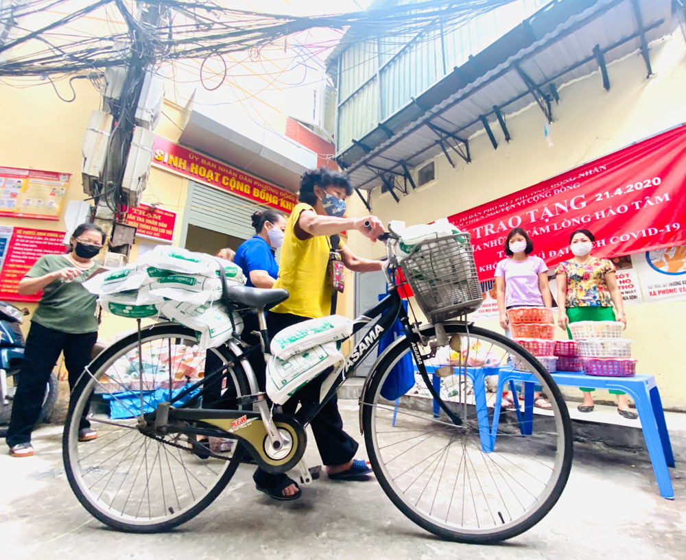 Chương trình thiện nguyện 'Trao yêu thương, gửi yêu thương' tặng 127 suất quà giúp đỡ những gia đình có hoàn cảnh khó khăn vì dịch COVID-19 được thực hiện bởi tổ dân phố số 2 cùng Mặt trận tổ quốc phường Đồng Nhân (quận Hai Bà Trưng, hà Nội).