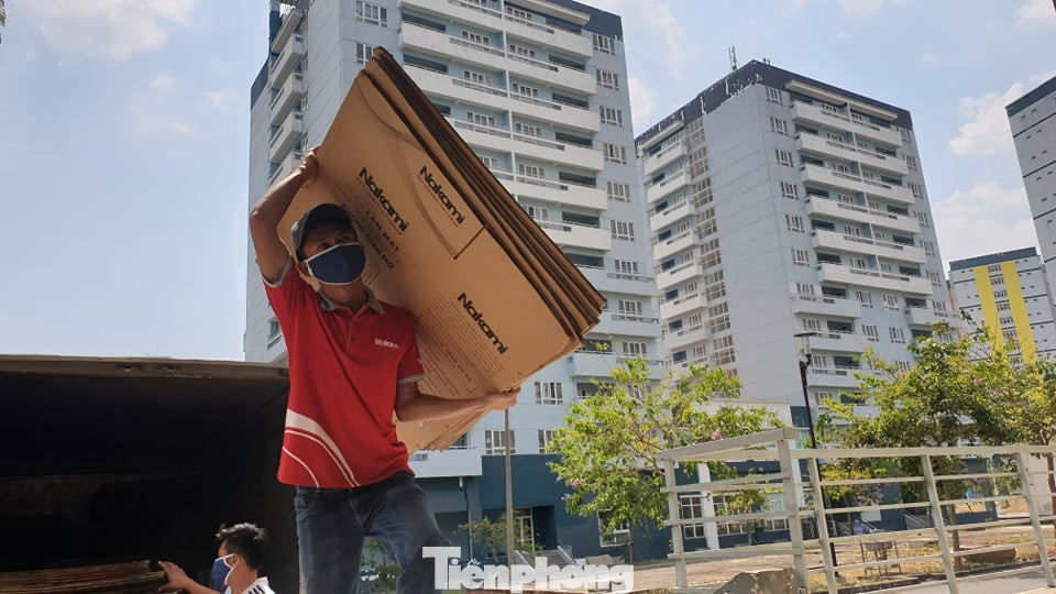 Trước tình hình khẩn cấp để bàn giao KTX thành khu cách ly, Trung tâm quản lý KTX phải dọn dẹp, sắp xếp và niêm phong gọn gàng, chỉnh chu đồ đạc của sinh viên để làm phòng cách ly. Việc dọn dẹp này cần rất nhiều thùng carton, băng keo và kéo. Trong đợt này, cần phải dùng tới 50.000 thùng carton để đóng đồ cho sinh viên nên nhiều cán bộ phòng ban, trung tâm truyền thông các trường đại học thành viên của ĐHQG TPHCM đã lên tiếng kêu gọi hỗ trợ khẩn cấp. Hưởng ứng lời kêu gọi này, chỉ sau hai ngày đã có hàng chục tấn thùng carton từ người dân, doanh nghiệp mang đến tận KTX.