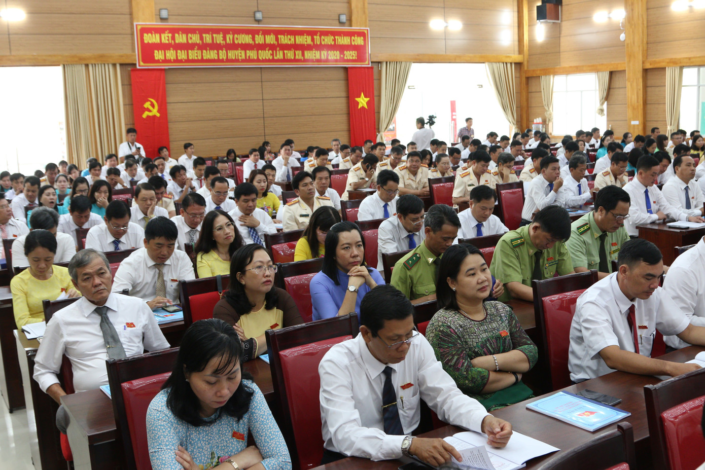 Quang cảnh đại hội. Theo báo cáo đánh giá của Ban Chấp hành Đảng bộ huyện khoá XI, nhiệm kỳ 2015-2020, qua 5 năm thực hiện Nghị quyết Đại hội XI của Đảng bộ huyện, Đảng bộ đã có nhiều nỗ lực, phấn đấu đạt được những kết quả quan trọng trên các lĩnh vực, đa số các chỉ tiêu đạt và vượt so với Nghị quyết đề ra, tạo thêm thế và lực mới để xây dựng Phú Quốc phát triển nhanh và bền vững trong giai đoạn tiếp theo.