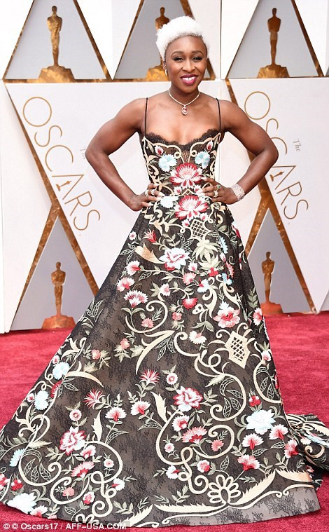 Quá lạm dụng hiệu ứng váy hoa, trang phục của nữ diễn viên Cynthia Erivo khiến người hâm mộ rối mắt.