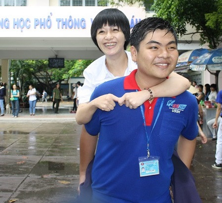 Tương tự, tại điểm thi của trường ĐH Nguyễn Tất Thành cũng có một thí sinh khá đặc biệt. Không may, bị tật nguyền bẩm sinh với đôi chân teo tóp, yếu đến mức không thể tự di chuyển được thí sinh Ngô Thị Yến Thảo quê ở Tiền Giang được các sinh viên bế lên phòng thi.