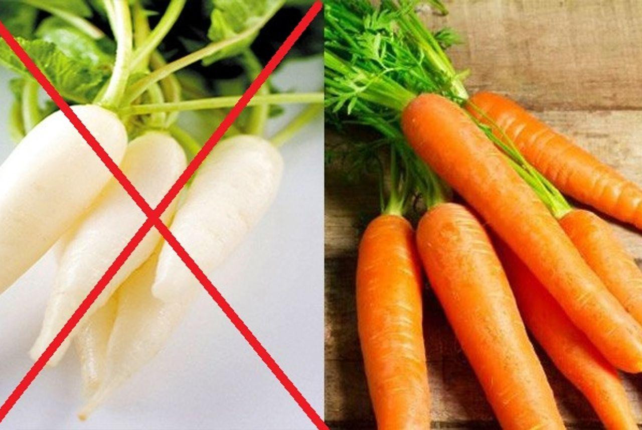 Hai loại thực phẩm này tốt cho sức khỏe nhưng khi chế biến chung lại gây hại. Cụ thể, trong củ cải trắng chứa lượng vitamin C cực cao, rất tốt cho sức khỏe của con người, trong cà rốt lại chứa một lượng chất phân giải enzim, vô hiệu hóa tác dụng của vitamin C, ăn cùng lúc sẽ phá hủy các thành phần dinh dưỡng.