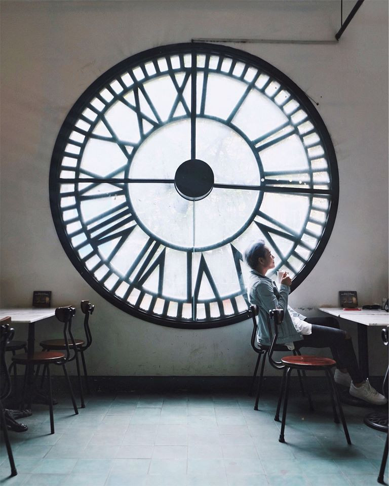 Vì chủ tiệm là kiến trúc sư nên từng ngóc ngách đều được thiết kế vô cùng tinh tế, mọi sự sắp đặt đều có chủ đích rõ ràng. Những tấm gương được sắp xếp khéo léo khiến không gian nhỏ của căn chung cư cũ bỗng trở nên rộng lớn và thoáng đãng lạ thường. Khung cửa sổ được làm bằng sắt, giả lập đồng hồ cổ với các chữ số La Mã cực kỳ gây ấn tượng. Lối vào của The Loft ấm áp ánh đèn vàng. Cánh cửa được làm từ khung sắt nặng, tay nắm hệt như ổ khóa của vòng xoáy thời gian, bạn sẽ có cảm giác mình đang “lạc lối” vào một nhà máy hay xưởng sản xuất của một khu công nghiệp thời xưa.
