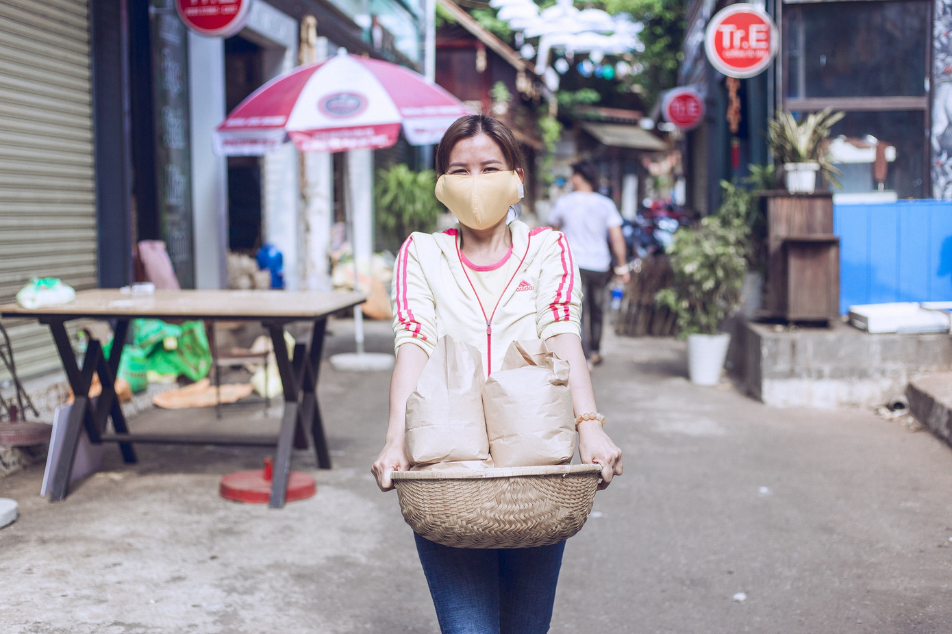 8 giờ sáng “ATM gạo” mới hoạt động, nhưng 7 giờ kém, nhiều tình nguyện đã có mặt vác gạo từ các xe của mạnh thường quân về vị trí tập kết, chuyển thực phẩm, đóng gói chia quà... Một nhóm khác phụ trách phần việc huớng dẫn người dân đến nhận gạo xếp hàng, rửa tay sát khuẩn... Dòng người đổ về mỗi lúc một đông, nối đuôi nhau dài gần 2 cây số, các tình nguyện viên phải căng mình điều tiết, giúp đỡ.