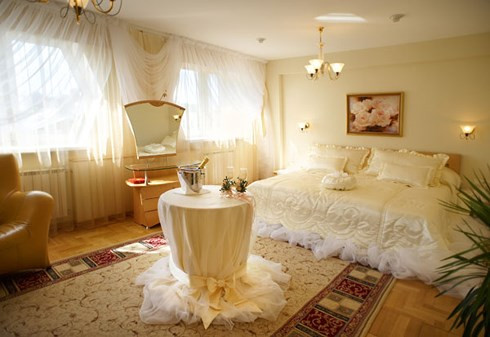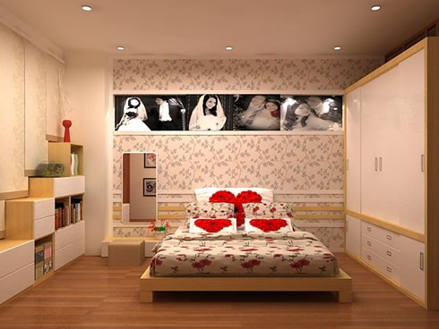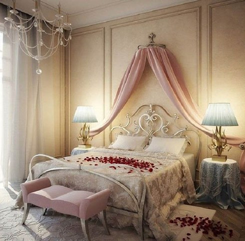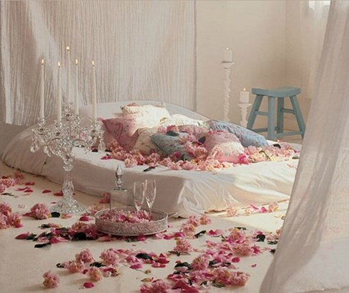 Phòng cưới tràn ngập những cánh hoa hồng lãng mạn.