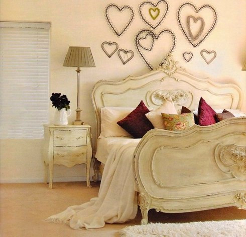 Điểm nhấn handmade độc đạo của những họa tiết trái tim trên đầu giường.