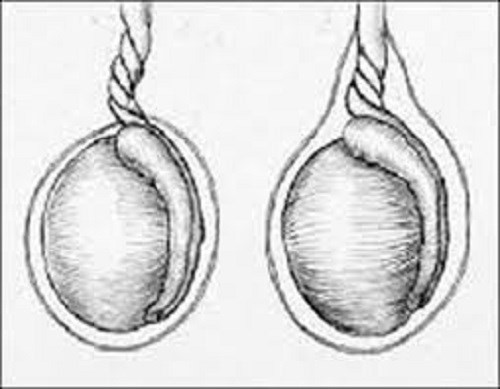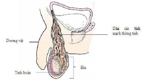 Giãn tĩnh mạch dây dịch hoàn: Nếu men theo dây dịch hoàn sờ nhẹ từ trên xuống dưới, phát hiện ở trong bìu có từng cục như con sâu cụm mềm và quanh co thì có thể là suy giãn tĩnh mạch dây dịch hoàn.