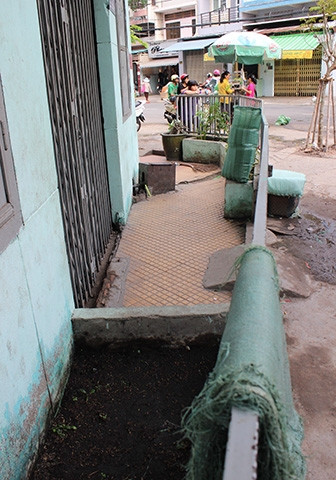 | Lối đi nhỏ hẹp là cửa vào của hai lớp học. |
