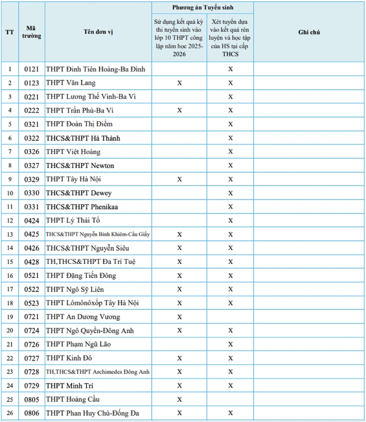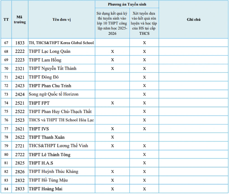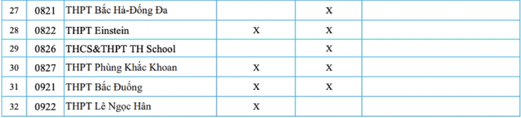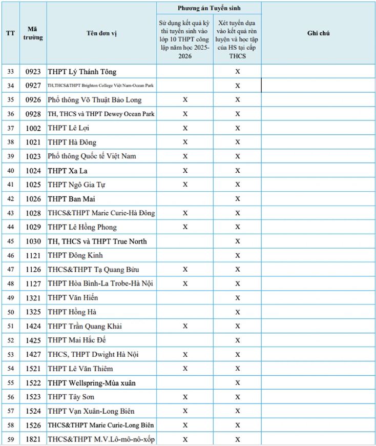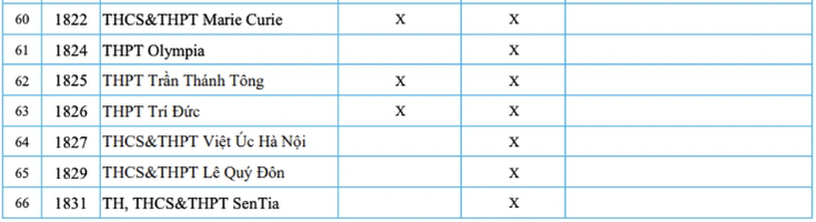 Trong số này, 33 trường không sử dụng kết quả kỳ thi lớp 10 công lập. Danh sách gồm nhiều trường tư như: Đoàn Thị Điểm, Newton, Phenikaa, TH School, Olympia, Việt Úc, Lê Quý Đôn...