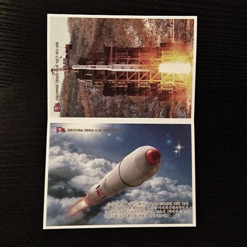 Một bộ thiếp chúc mừng, được phát hành từ tháng 12/2012, nhằm kỷ niệm sự kiện Triều Tiên phóng thành công tên lửa Unha-3. Tên lửa Unha-3 được phóng lúc 9h49 ngày 12/12/2012 và sau đó đưa vệ tinh Kwangmyongsong-3 vào quỹ đạo. Sự kiện khi đó nhận được nhiều sự quan tâm của các nước như Hàn Quốc, Mỹ, Nhật Bản.