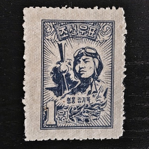 Con tem được in từ những năm 1950 vinh danh một phi công Triều Tiên là anh hùng trong chiến tranh.