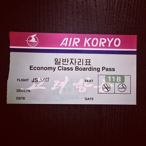 Vé lên chuyến bay ngày 25/10/2000 của hãng hàng không quốc gia Air Koryo chở các nhà báo tới Bình Nhưỡng để đưa tin về chuyến thăm Triều Tiên của cựu ngoại trưởng Mỹ Madeleine Albright.