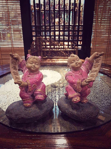 Trên đây là cặp Tiên đồng - Ngọc nữ được làm từ quặng núi lửa, tích lũy nhiều vượng khí tốt từ hàng nghìn năm của thiên tạo. Hai em bé Tiên đồng - Ngọc nữ cầm hai câu đối: Vạn sự như ý & Cung hỷ phát tài chính là vật phẩm không thể thiếu trong không gian gia chủ ngày tết.