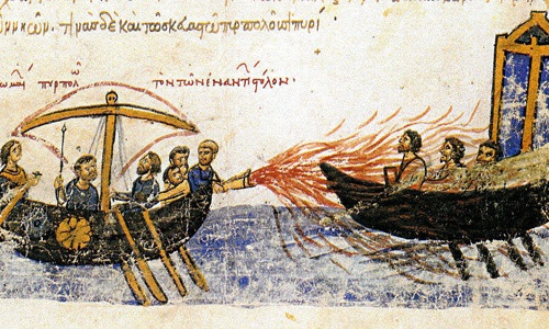 Hàng loạt vũ khí phun lửa và chất lỏng gây cháy từng xuất hiện từ thời cổ đại nhưng Đế quốc Đông La Mã được cho là nơi tạo ra một loại vũ khí phun lửa vô cùng đặc biệt. Các nhà sử học còn miêu tả đây là phiên bản thô sơ của bom napalm ngày nay.