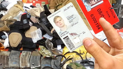 Hôm chủ nhật, trang truyền thông Amaq của phiến quân Nhà nước Hồi giáo (IS) đăng tải các bức ảnh chụp nhiều vũ khí, trang bị của lính Mỹ cùng một chứng minh thư quân đội của một người tên là Ryan Larson.