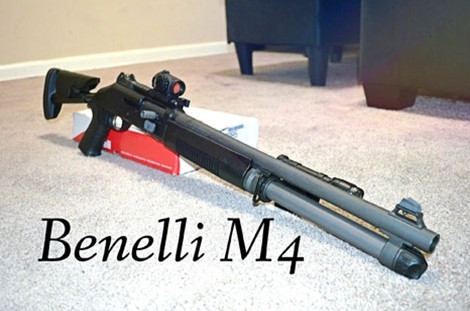 Trong khi đó, Benelli M4 là mẫu súng ngắn bán tự động của Italia. Benelli M4 có trọng lượng 3,82kg, độ dài tổng cộng 885mm với nòng dài 470mm. Thiết kế khá dài và trơn so với các mẫu shotgun khác. Benelli M4 có báng dạng thanh, phần trên và phía cuối có lót cao su đặc giúp phản lực khi bắn ít tác động vào vai và má hơn. Báng súng cũng có thể thu gọn để tiện trong việc di chuyển.