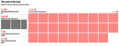 Ngày 3/4/2016, khoảng 11,5 triệu tài liệu, trong đó có 4,8 triệu e-mail, 2,5 triệu bộ hồ sơ với dung lượng 2,6 terabyte từ năm 1977 đến cuối 2015 của công ty luật Mossack Fonseca ở Panama bị rò rỉ, hé lộ mạng lưới công ty "ma" khổng lồ trên thế giới. Chúng được cho là lập ra để giúp người giàu né thuế và trong một số trường hợp là rửa tiền. Nhiều công ty được đề cập có liên quan đến thân tín của các chính khách và người nổi tiếng trên thế giới.