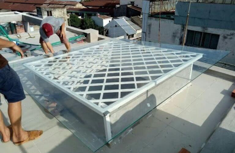 | Hiện nay, vật liệu làm mái che giếng trời được sử dụng nhiều nhất là tấm lấy sáng polycarbonate, kính, bạt, tôn,… |