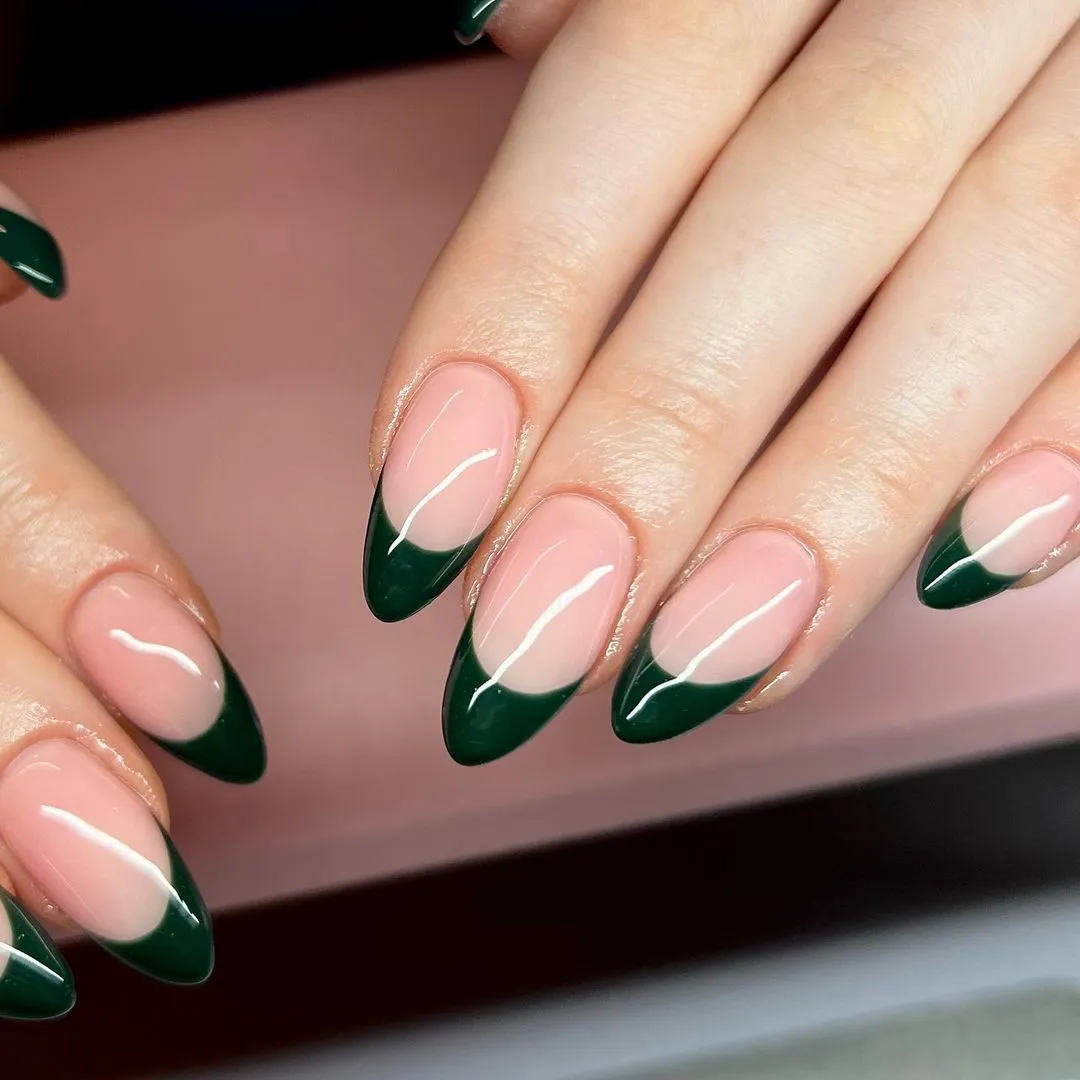 Màu xanh lá cây là truyền thống của Giáng sinh, những tông xanh lá trầm và đậm trông sang trọng và sáng da hơn các tông xanh lá tươi. Đặc biệt là màu xanh trầm được sơn đầu móng kiểu Pháp gợi nhớ đến cây tầm gửi Giáng sinh ở Londontown.