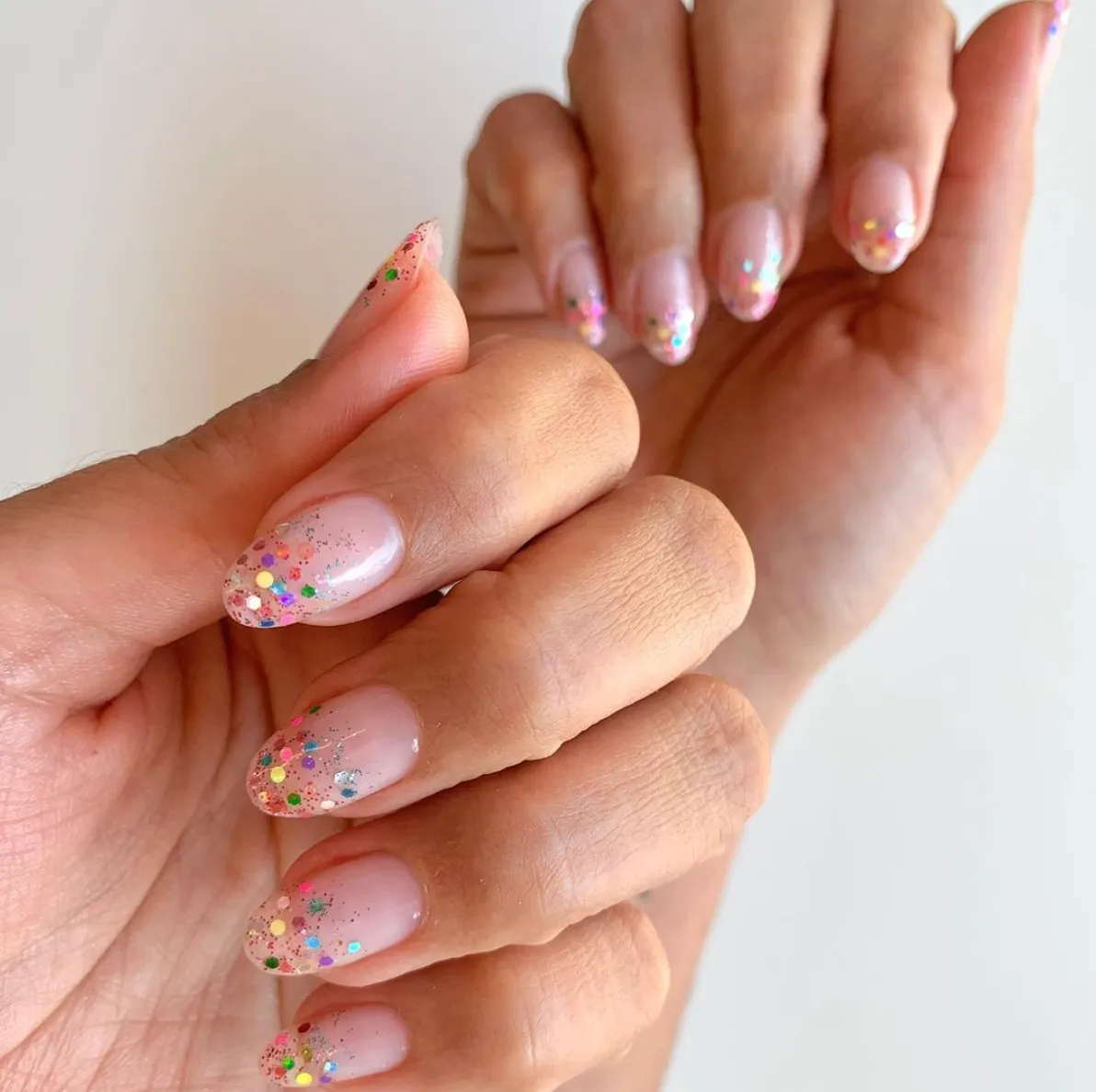 Lấy cảm hứng từ đó, những thiết kế nails đầy màu sắc và nhũ lấp lánh như pháo hoa giấy cực dễ thực hiện sẽ mang đến cho bạn cảm giác rộn ràng và vui vẻ.