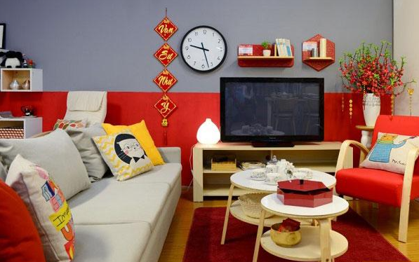 | Để mang không khí Tết về nhà, gia chủ có thể trang trí tường phòng khách, phòng ngủ, bếp,… bằng decal dán tường hoặc giấy dán tường bằng cách lựa chọn những hình ảnh về hoa đào, hoa mai, bánh chưng, mâm ngũ quả,… mang màu sắc rực rỡ như đỏ, xanh, vàng,… Với cách này gia chủ vừa tiết kiệm được chi phí mà lại không tốn công sức. Tuy nhiên cần căn chỉnh kích thước của khu vực định dán decal để tấm decal không bị thừa hoặc thiếu. |