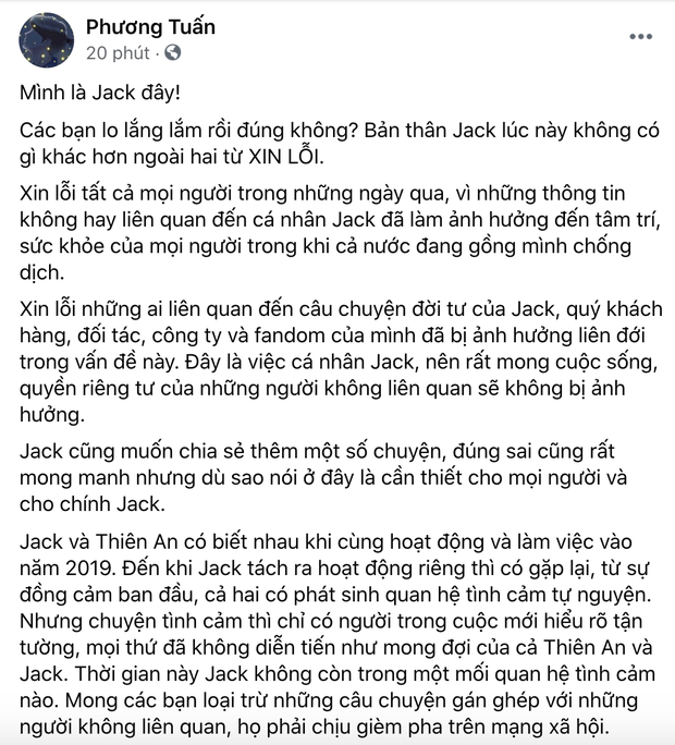 Mặc dù có đưa ra lời xin lỗi về sự việc, nhưng dường như mọi chỉ trích đối với giọng ca Sóng Gió vẫn không giảm bớt. Chính vì sự việc này, Jack ít xuất hiện hơn trong các hoạt động nghệ thuật và mất đi một lượng lớn tình cảm khán giả dành cho anh.