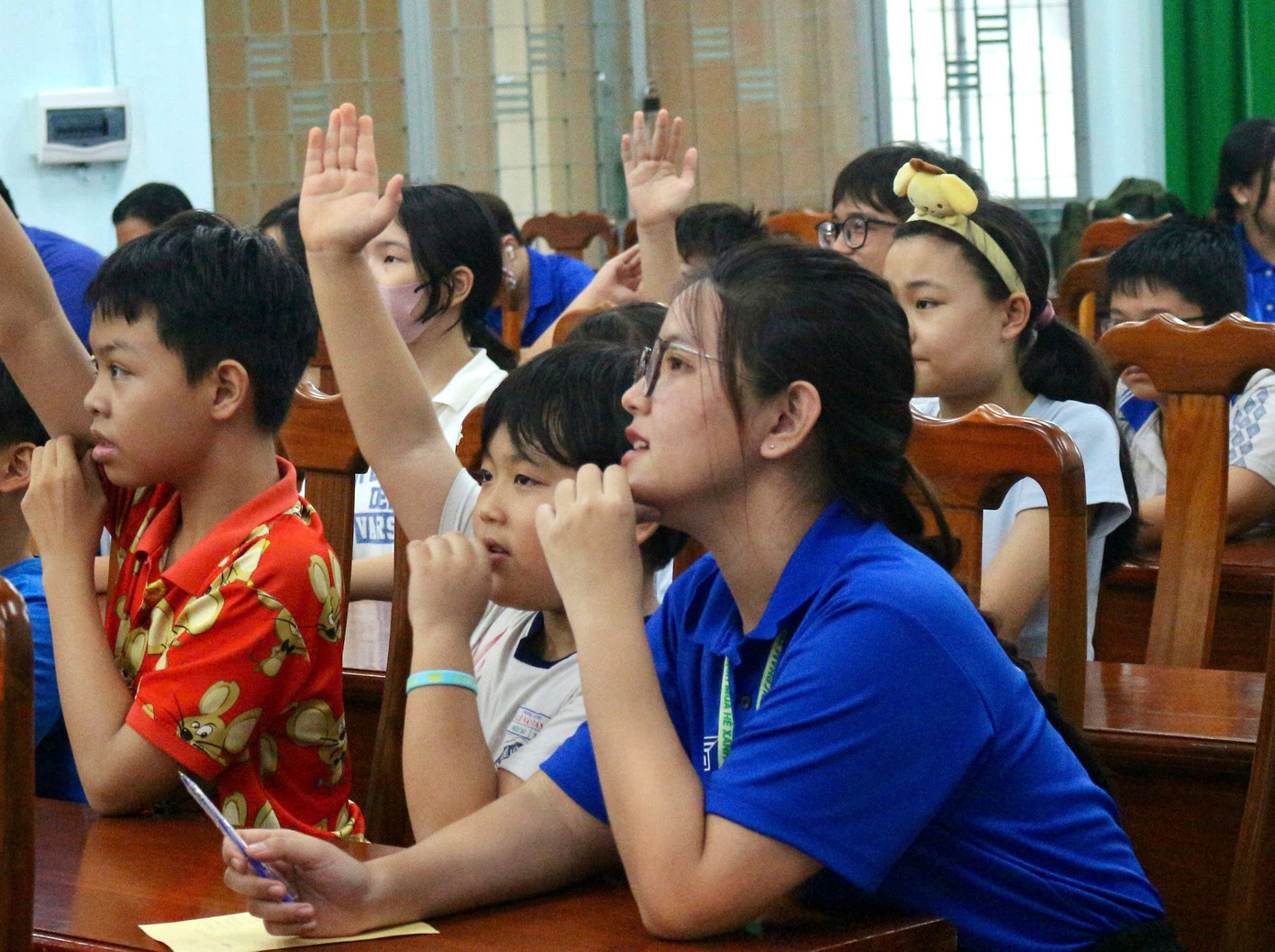 | Quỳnh Như thích truyền năng lượng tích cực tới các em nhỏ. |