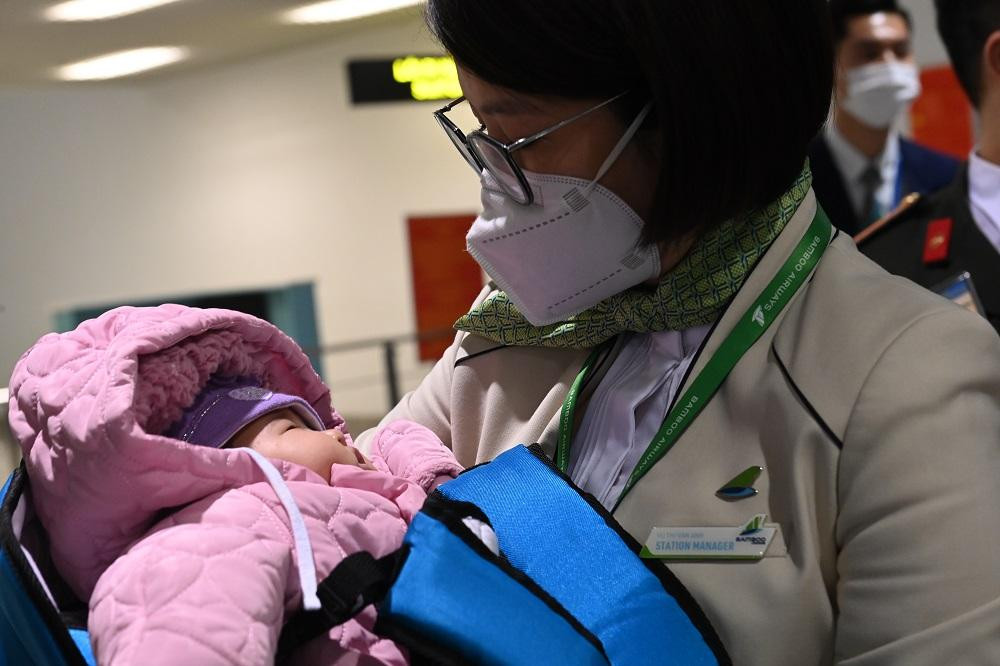 | 300 hành khách về nước trên chuyến bay lần này, phần lớn là các đối tượng yếu thế như phụ nữ mang thai, người già, người có bệnh nền… Đặc biệt, gần một nửa số hành khách trên chuyến bay là trẻ em. |