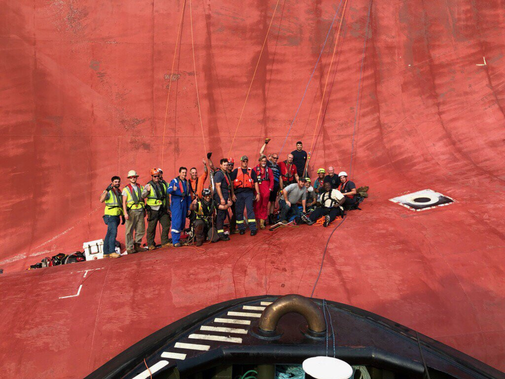 Các đội cứu hộ đã tìm cách khoan các lỗ hổng lớn trên thân tàu, đủ lớn để đưa các thủy thủ ra ngoài.